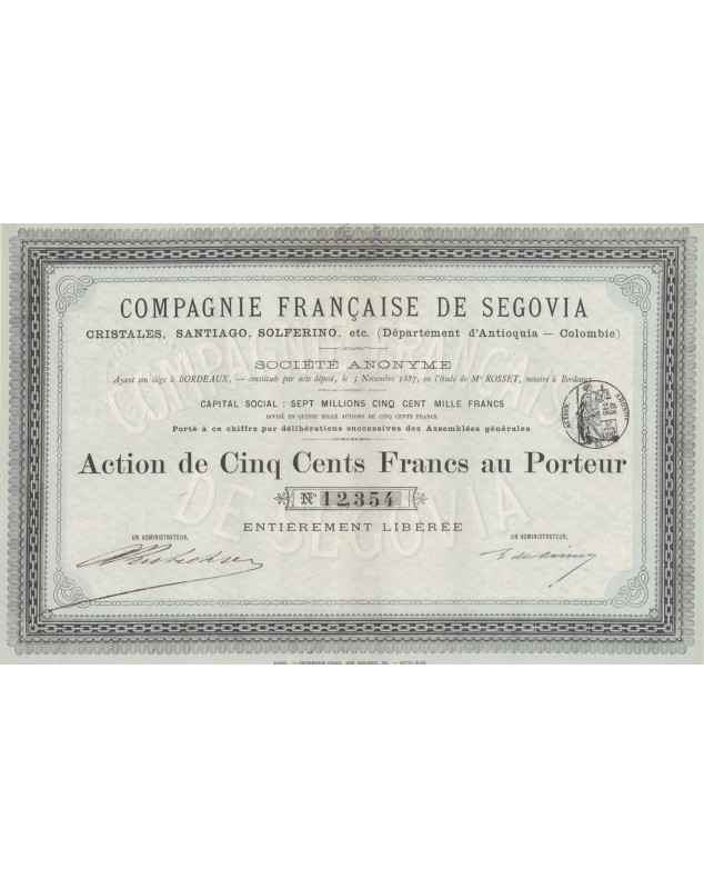 Compagnie Française de Segovia, Cristales, Santiago, etc. (Département d'Antioquia, Colombie)