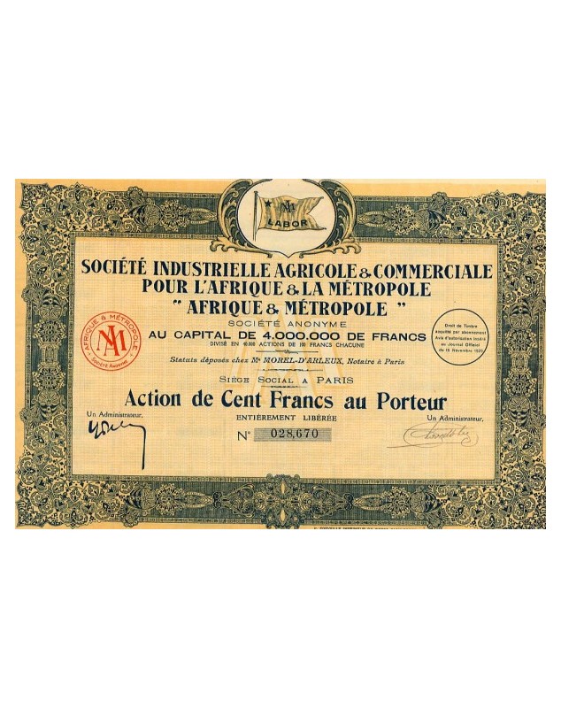 Action de 100F - Paris 1929