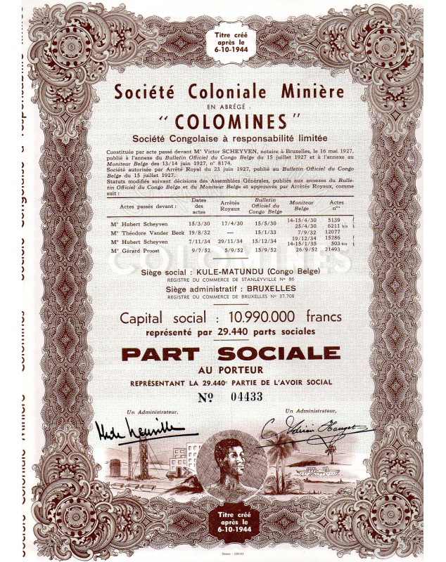 Part Sociale - Kule-Matundu (Congo Belge) - 1944