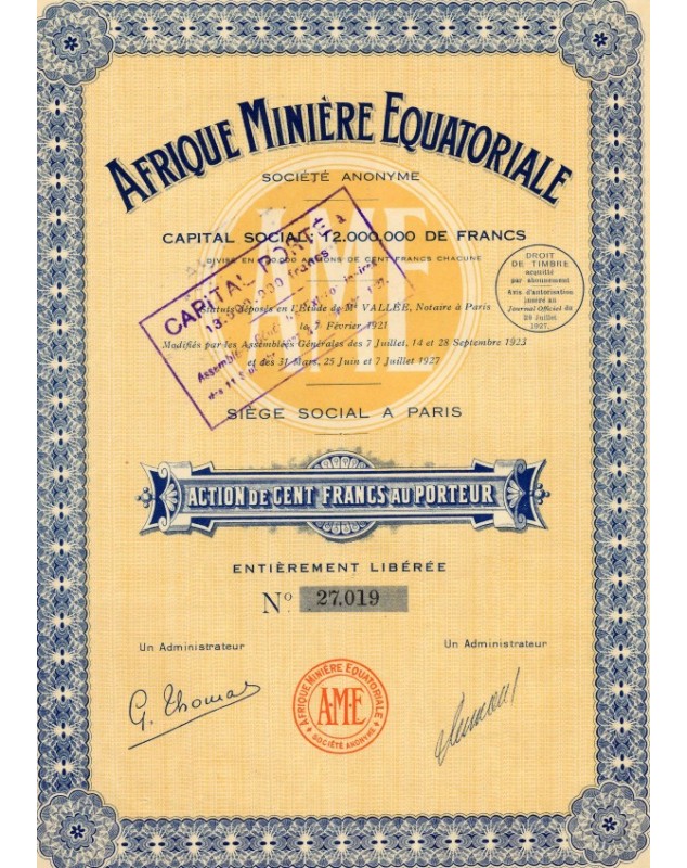 AEF (Afrique Equatoriale Française) Gouvernement Général de l'Afrique Equatoriale Française - Emprunt 4,5% 192920,00 €
