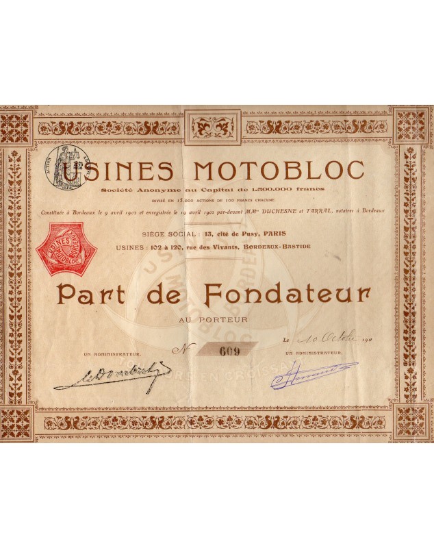 Usine d'automobiles et de vélomoteurs à Bordeaux-Bastide, 102-120 rue des Vivants. Société créée en 1902 pour l’exploitation des brevets Schaudel sur le bloc-moteur, d'où le nom de la société.