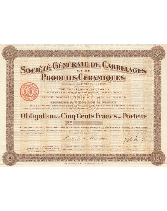 Lot de deux titres : Bon et Obligation de 500F - Paris 1922 et 1923
