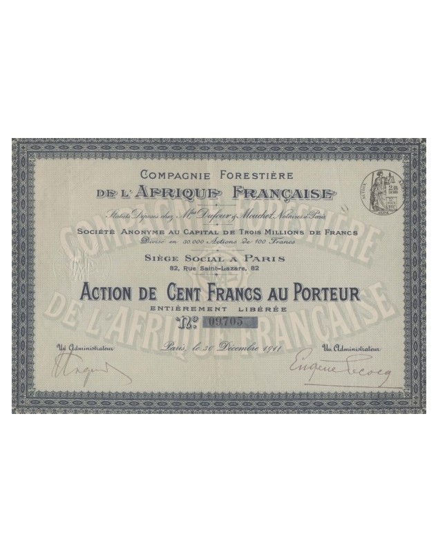 Signatures à gauche du président du conseil d’administration Jean Pagnoud et à droite d'Eugène Lecocq, administrateur des colonies, ancien chef de cabinet du gouverneur de la Côte-d’Ivoire, administrateur délégué de la Compagnie générale de l'Afrique française.