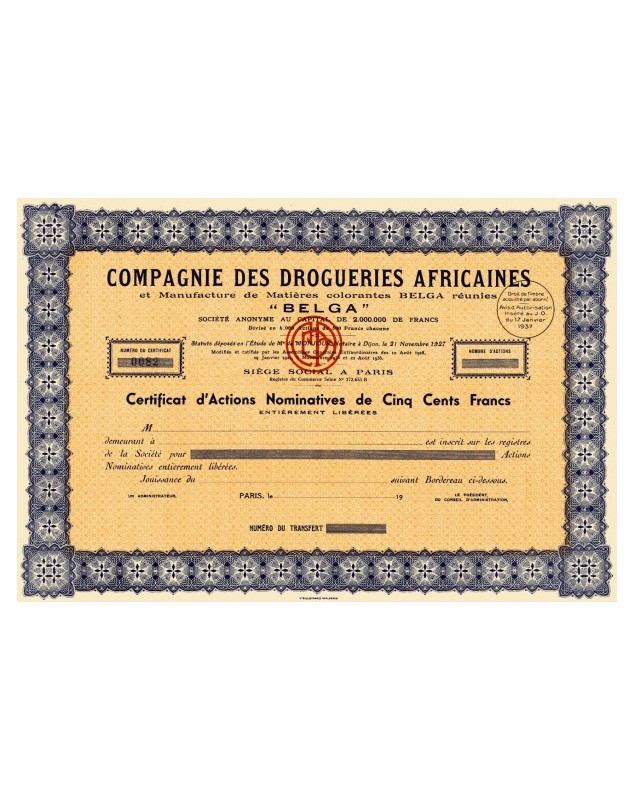 Cie des Drogueries Africaines et Manufacture de Matières colorantes BELGA réunies