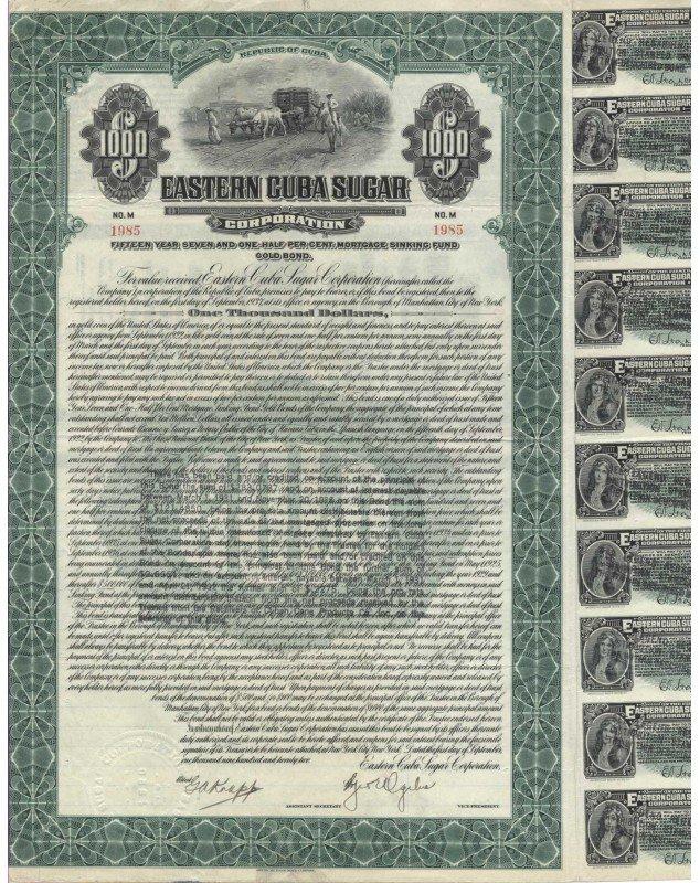 Republic of Cuba - Eastern Cuba Sugar Corporation - Emprunt Or 7,5%