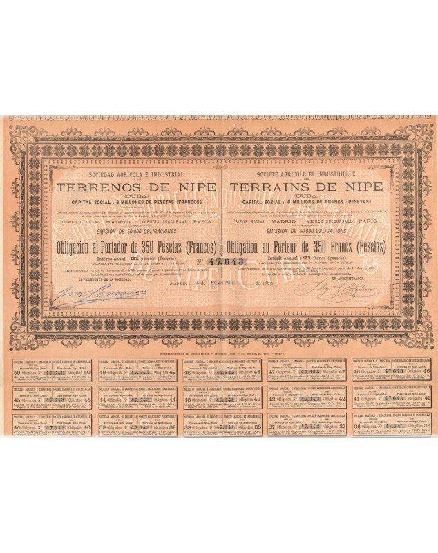 Obligation au porteur de 350 francs (Pesetas) émise à Madrid en 1882.