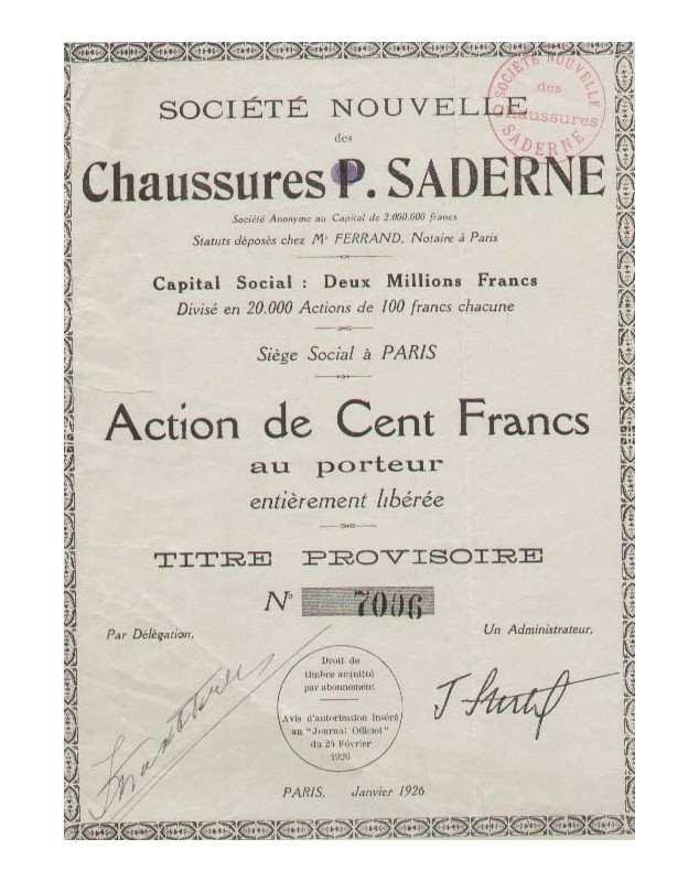 Titre Provisoire d'une Action de 100F - Paris 1926