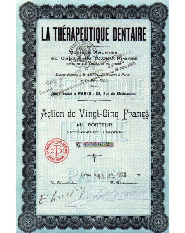 Action de 25F - Paris 1928. Rare (400)