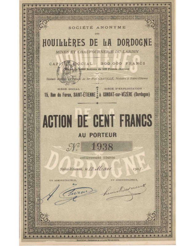 Action de 100F - Saint-Etienne / Condat-sur-Vézère 1901