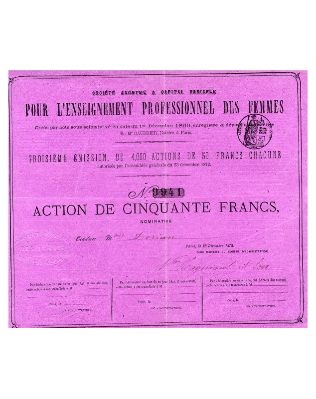 Seulement 4000 actions émises, sur un papier de couleur violet, ce qui est très rare.