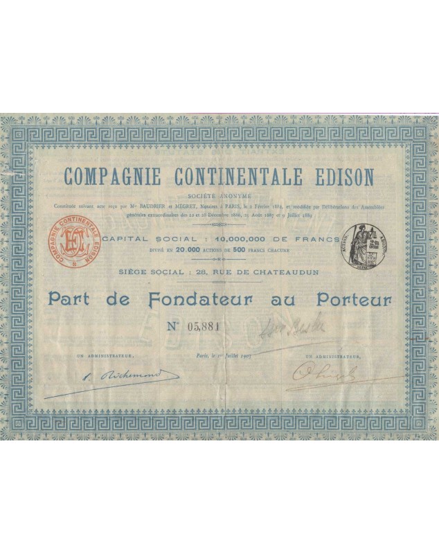 Continental Edison fut fondée par Thomas Edison en 1882. En 1891, elle fusionne avec Thomson Houston pour fonder le groupe General Electric. En 1958, Continental Edison passe sous contrôle de la CGE. Continental Edison devient français en 1971, lorsque General Electric cède à Thomson la majorité de sa participation dans la marque.