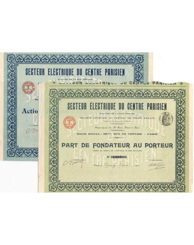 Lot d'une Action de 100F et d'une Part de Fondateur - Paris 1910