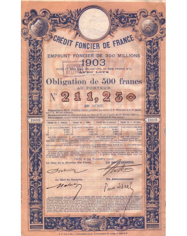Crédit Foncier de France - Emprunt Foncier de 300 Millions 1903