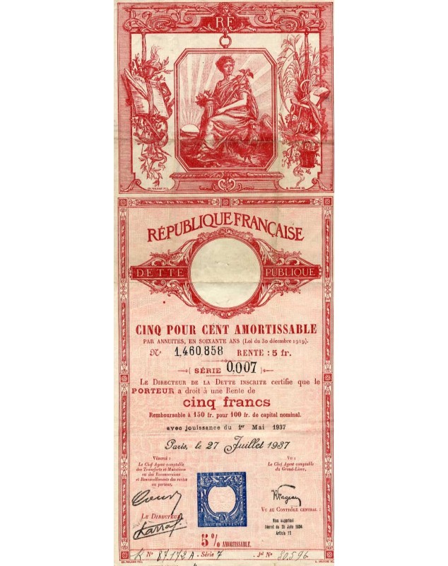 AOF (Afrique Occidentale Française) Gouvernement Général de l'Afrique Occidentale Française - Emprunt 5,5% 1936-195720,00 €
