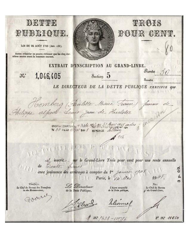 Certificat d'Inscription d'Obligation 3% - Paris, dates diverses