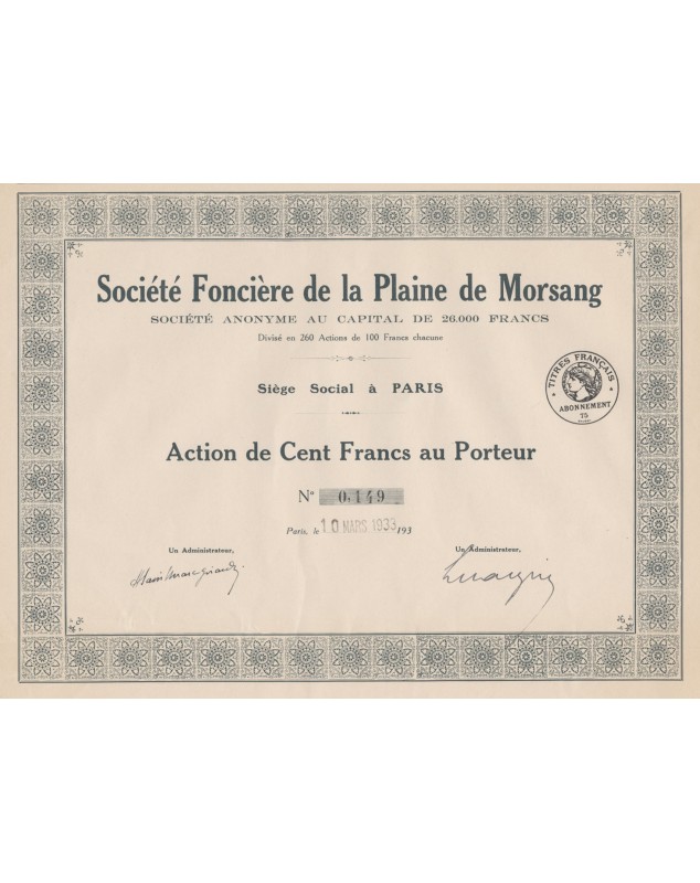 Action de 100F - Paris 1933.
