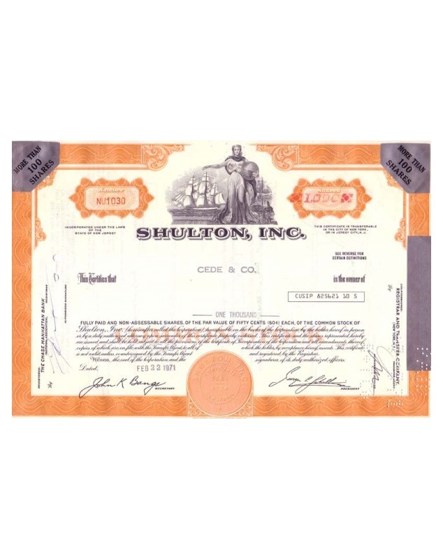 Titre de 1000 actions de 0,50$ chacune - New York 1971