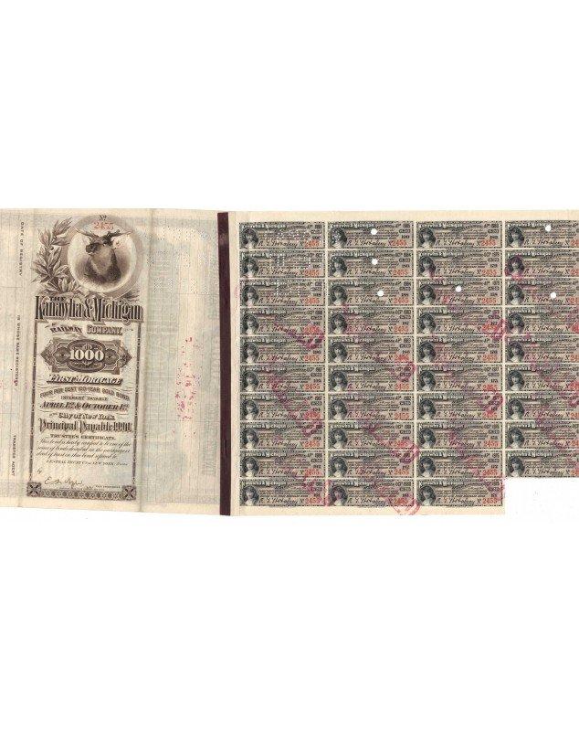 Obligation Or Hypothécaire 4% de 1000$ - Etat de l'Ohio & de la Virginie de l'Ouest 1890