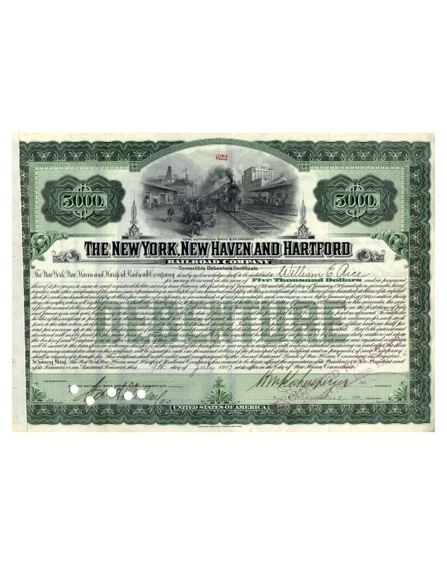 Obligation de 5000$ émise à New Haven, Connecticut 1907