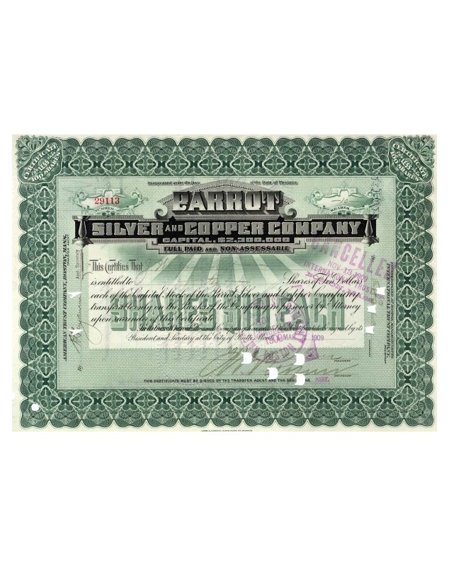 Titre de 10 Actions de 10$ chacune - Butte (Montana) 1909
