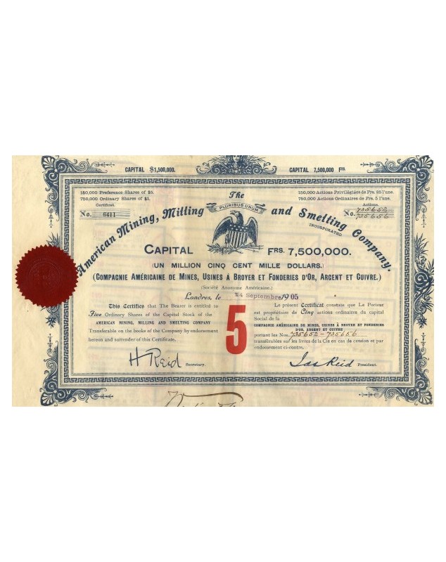 Cie Américaine de Mines, Usines à Broyer et Fonderies d'Or, d'Argent et Cuivre