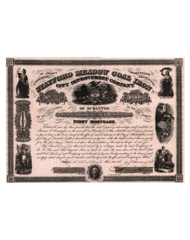 Obligation de 100$ 6% émise à Philadelphie en 1858.