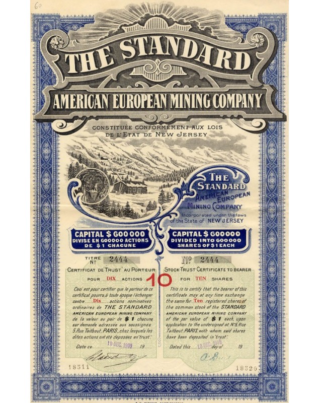 Titre de 10 Actions d'1$ chacune - New Jersey 1909