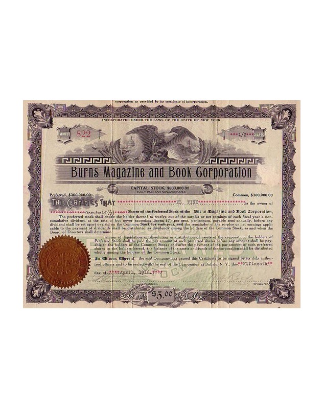 Titre d'Actions de 5$ - Buffalo 1916