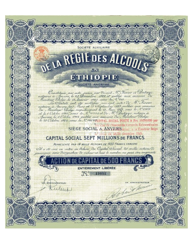 Ethiopie, Djibouti, Somalie Société Auxiliaire de la Régie des Alcools en Ethiopie ''Rialet''25,00 €