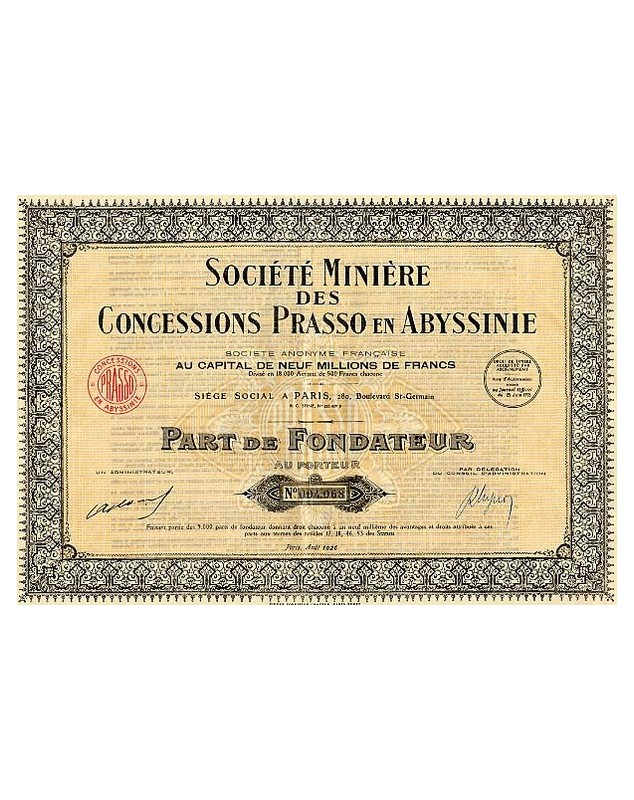Ethiopie, Djibouti, Somalie Compagnie du Chemin de Fer Franco-Ethiopien de Djibouti à Addis-Abeba (1923)50,00 €