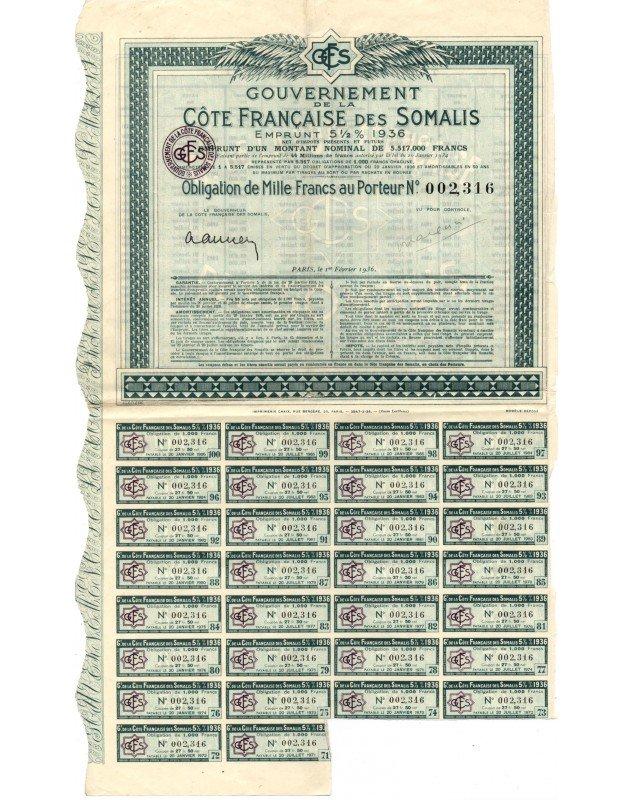 Gouvernement Français de la Côte Française des Somalis - Emprunt 5,5% 1936