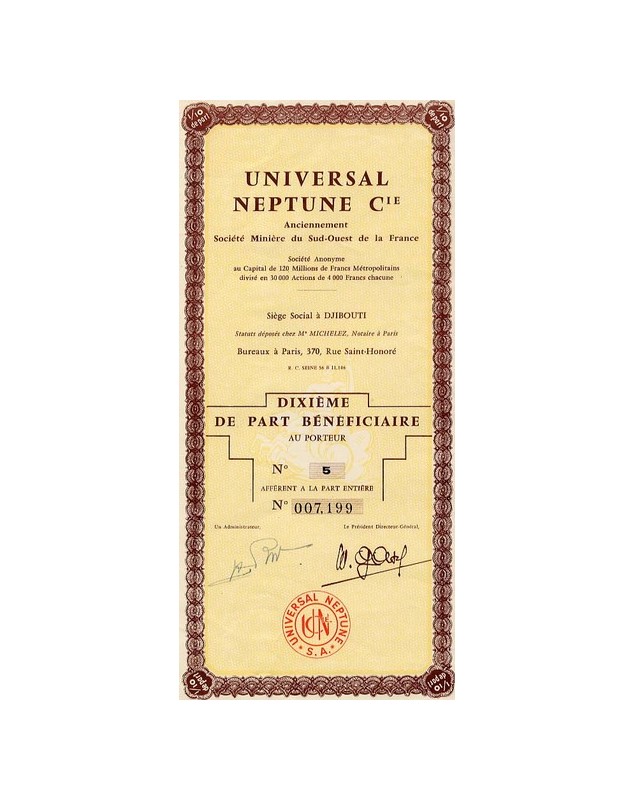 Ethiopie, Djibouti, Somalie Compagnie du Chemin de Fer Franco-Ethiopien de Djibouti à Addis-Abeba (1923)50,00 €