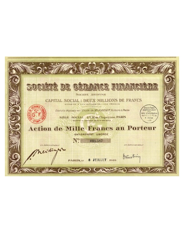Action de 1000F - Paris 1926
