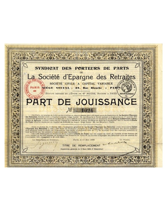 Syndicat des Porteurs de Parts de la Sté d'Epargne des Retraites
