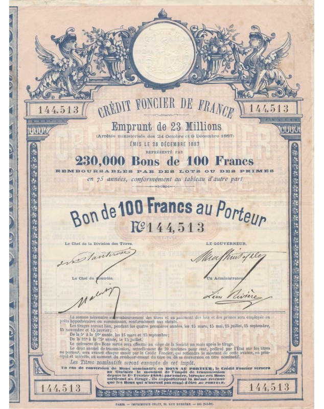Crédit Foncier de France - Emprunt de 23 Millions 1887