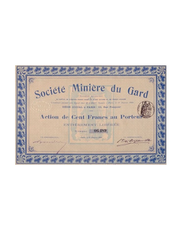 Indre et Loire 37 Sté d'Etudes de Chemin de Fer de Tours à Alais pour la jonction directe de la Manche à la Méditerranée40,00 €