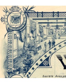 Superbe décor par Ch. Crabbe, avec blasons des Etats-Unis, d'Angleterre, d'Autriche, Italie, Russie et Belgique. Sur la droite, vue de la rue de Rivoli avec ses arcades, et au loin l'Arc de Triomphe.