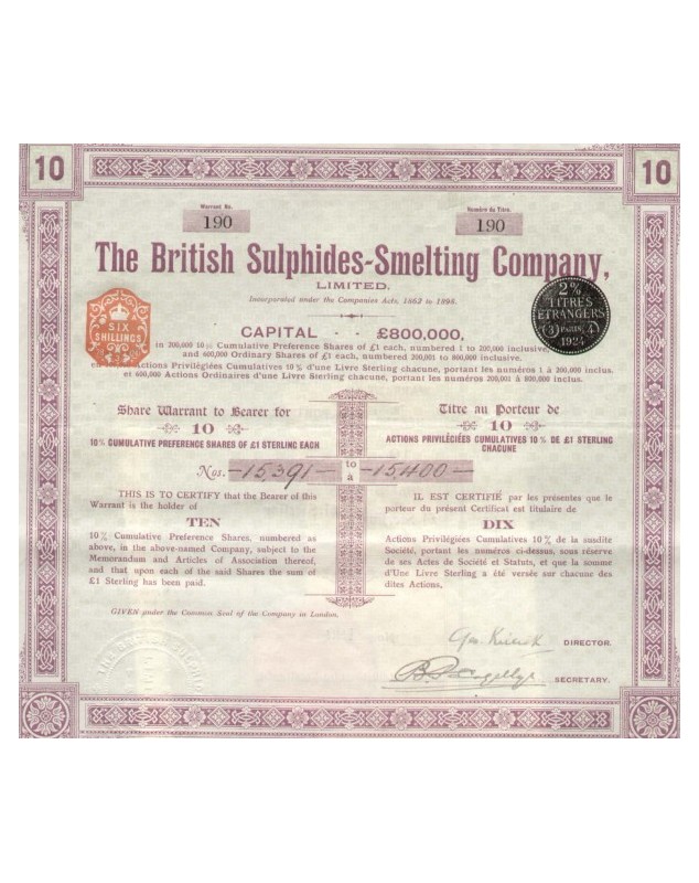 Titre de 10 Actions de 1£ chacune - london