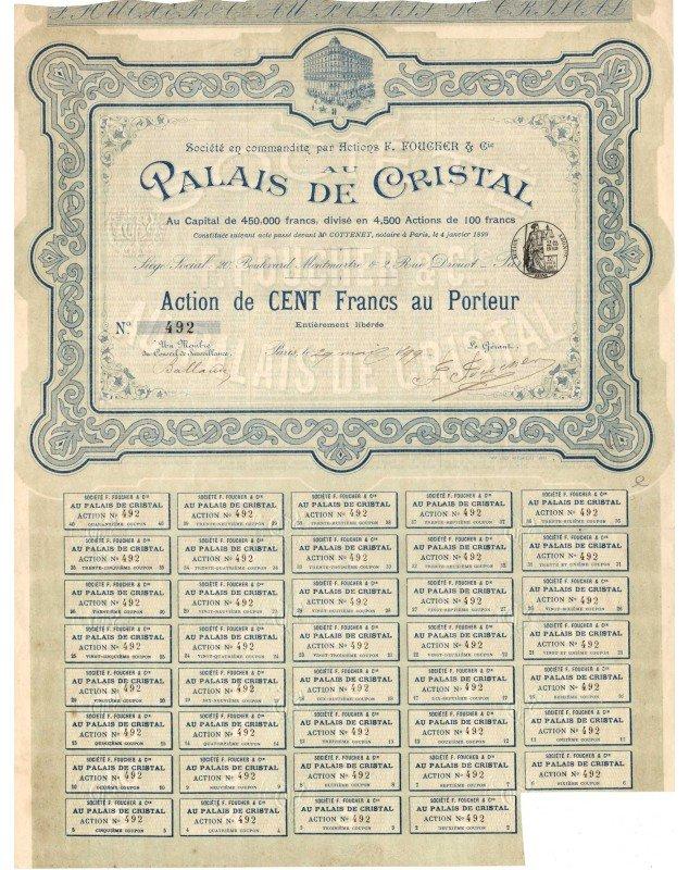 Action de 200 francs au porteur émise à Paris en 1899, signée par le fondateur F. Foucher.