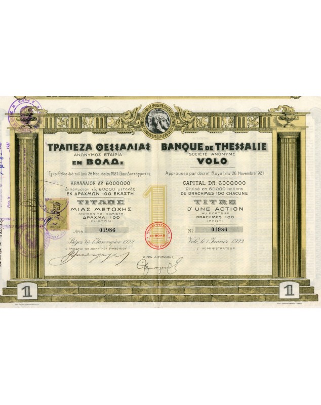 Titre d'1 Action de 100 Drachmes - Volo 1922