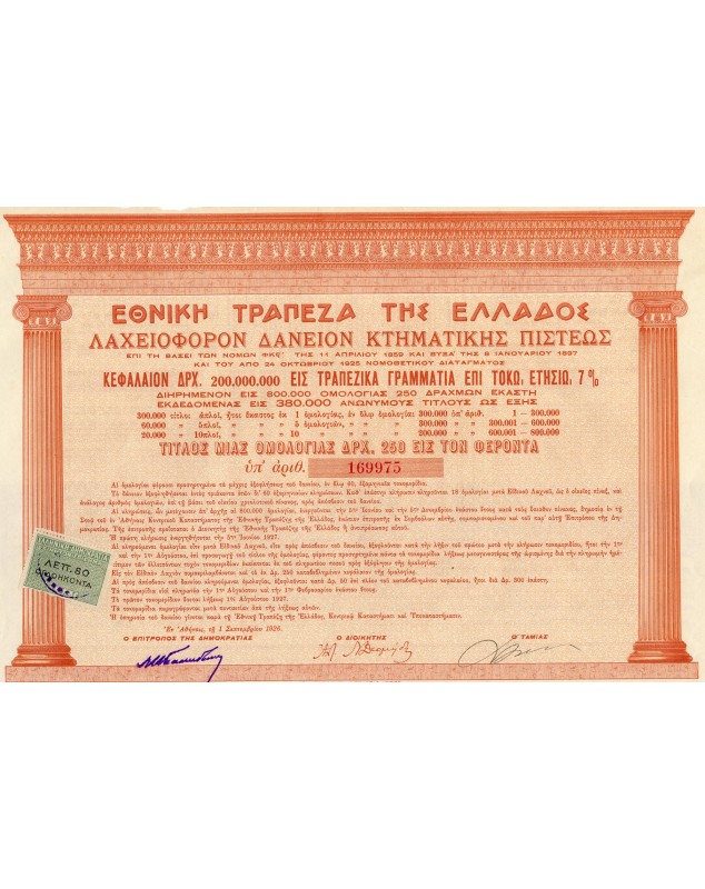 Banque Nationale de Grèce. Emprunt à Lots de Crédit Foncier