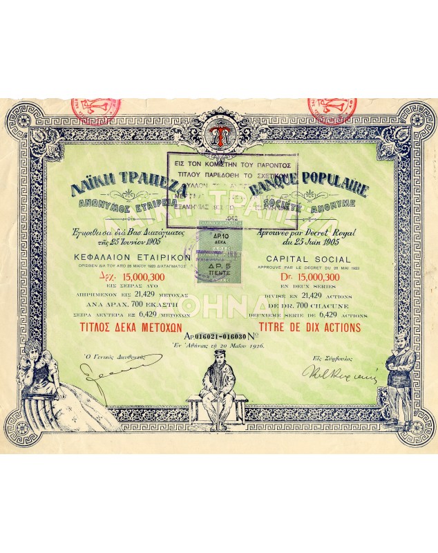 Titre de 10 Actions de 700 Dr chacune - Athènes 1926