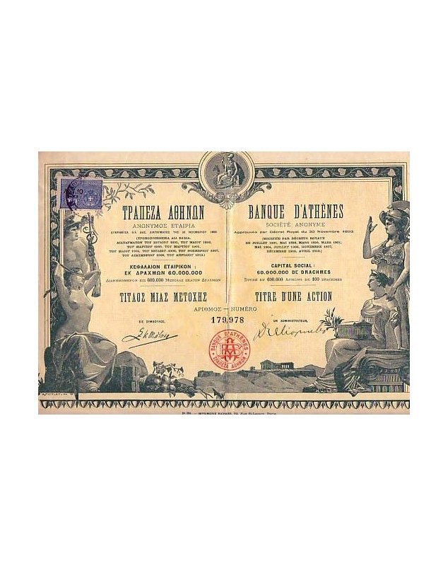 Titre d'1 Action de 100 Drachmes - Athènes 1913