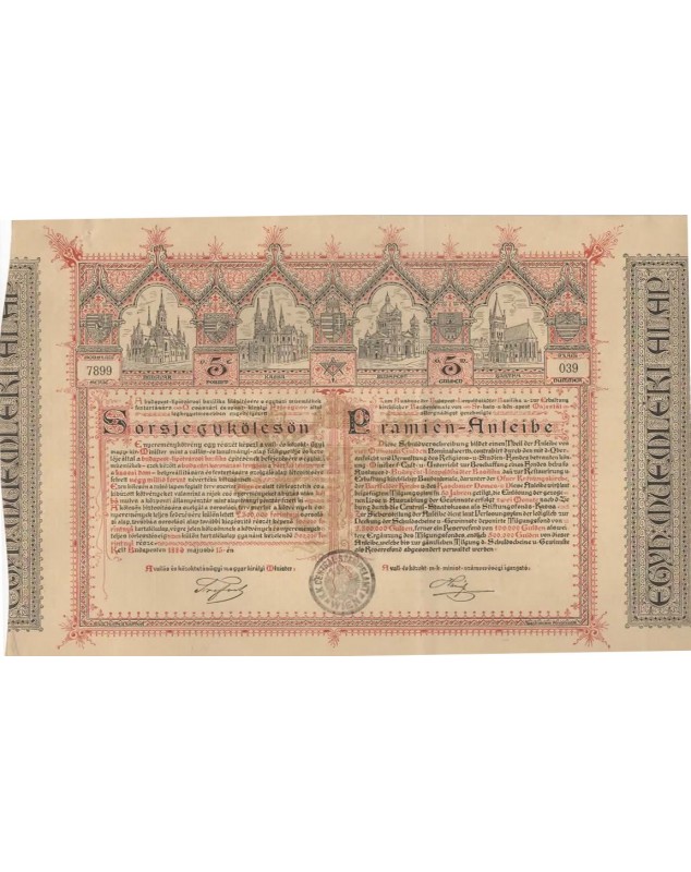 Obligation de 5 Gulden émise à Budapest en 1886.