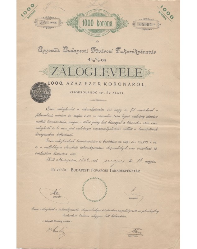 Banque d'Epargne de Budapest - 4,5% 1000Kr