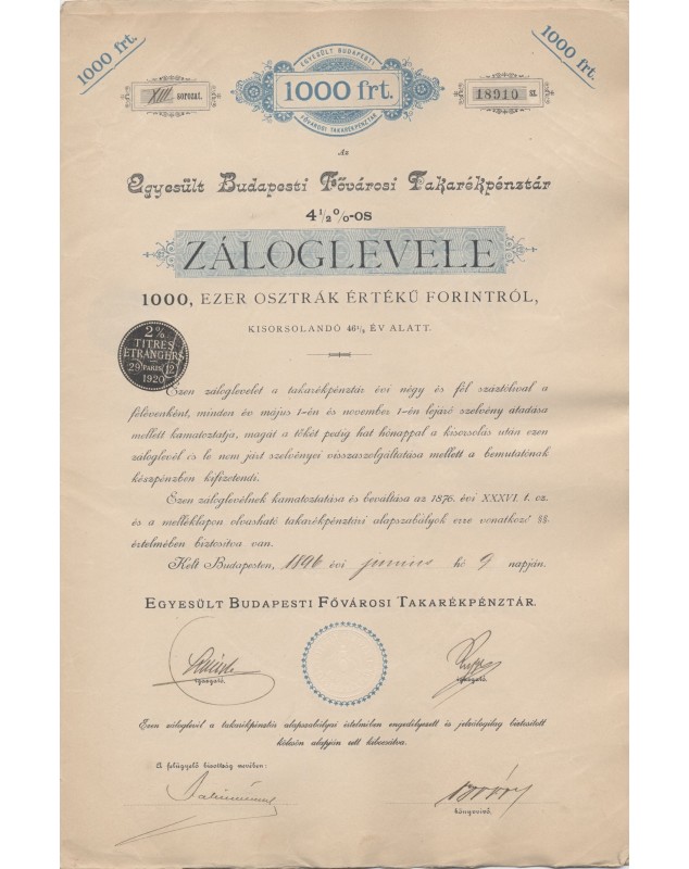 Banque d'Epargne de Budapest - 4,5% 1000Frt