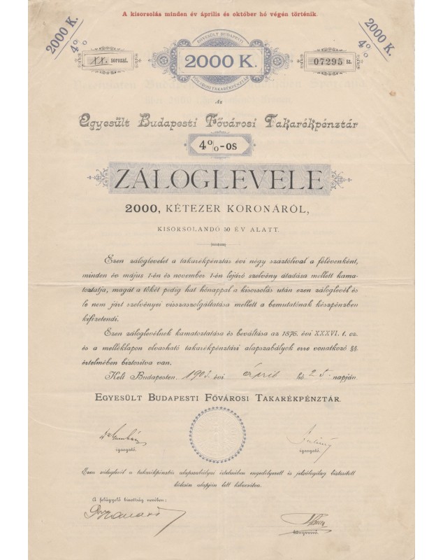 Banque d'Epargne de Budapest - 4% 2000Kr