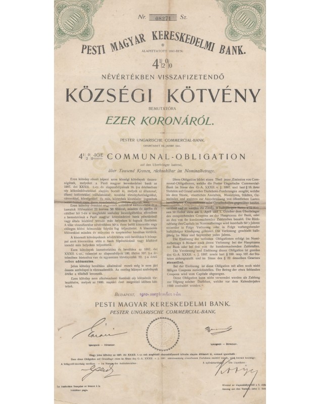 Banque Commerciale Hongroise de Pest - Obligation Communale 4,5%