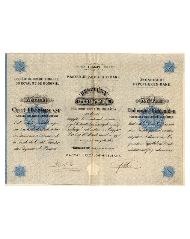 Action de 100 Fl. Or. (250F) - Budapest 1898