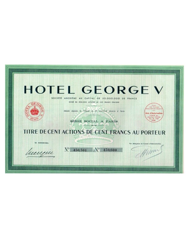 Titre de 100 Actions - Paris 1939